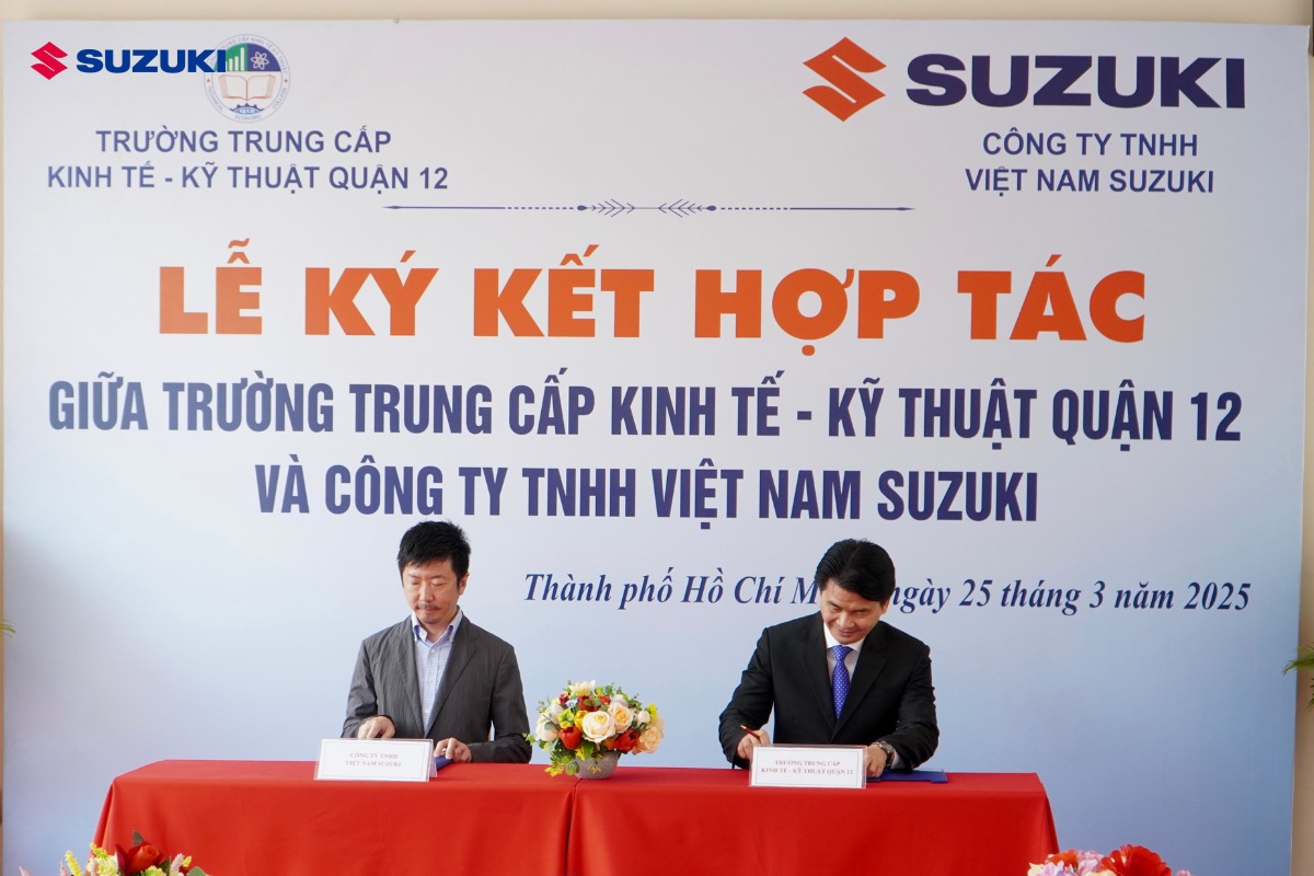 Hiểu được điều này, ngày 25/03 vừa qua, với sự kết nối của IECD Việt Nam, Công ty TNHH Suzuki Việt Nam và Trường Trung cấp Kinh tế - Kỹ thuật Quận 12 đã chính thức ký kết thỏa thuận hợp tác tại khuôn viên nhà trường. Đồng hành cùng chương trình, Việt Nam Suzuki: